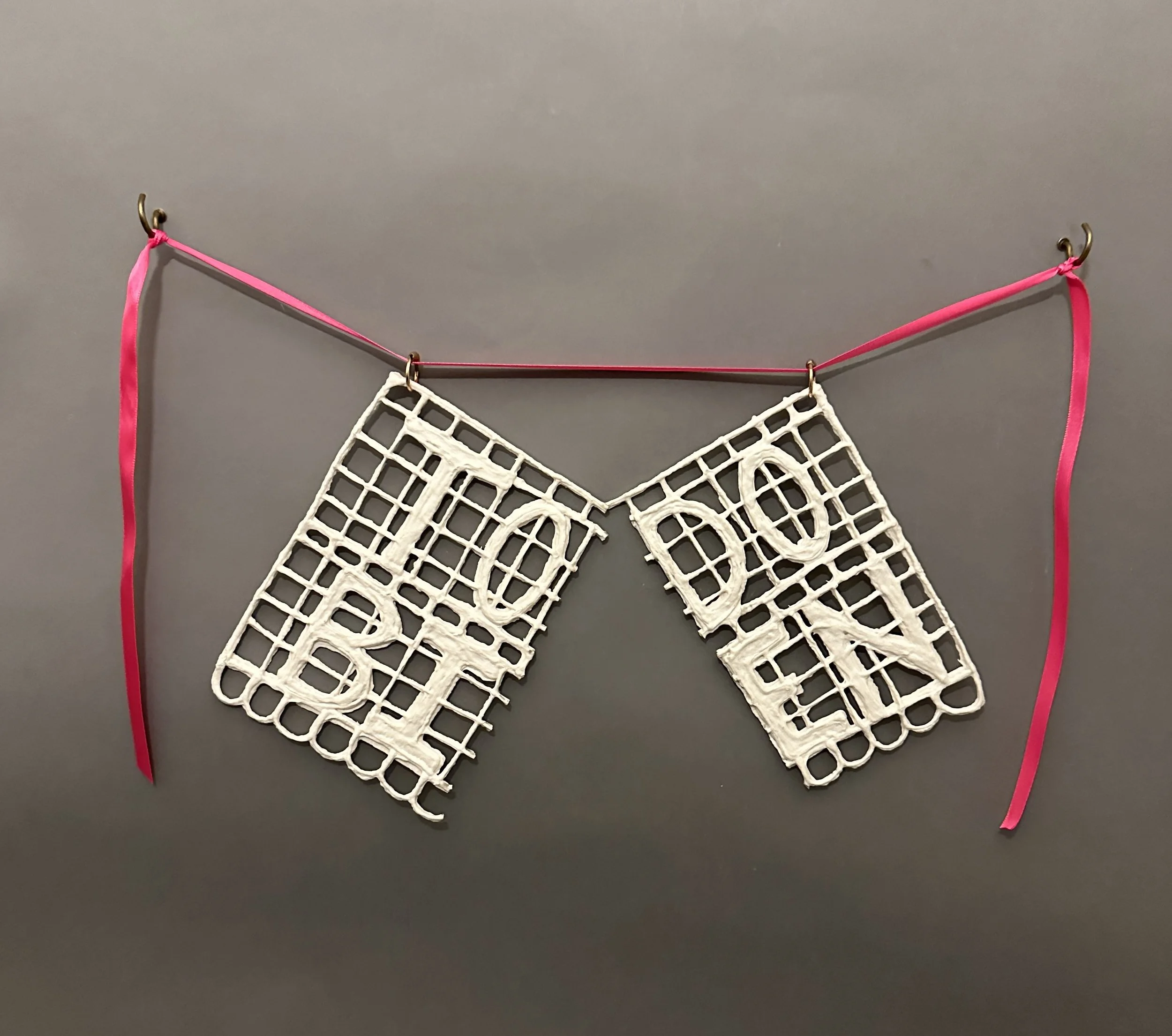 For this series, I found inspiration in the traditional papel picado style, using porcelain paper clay to craft intricate banners. Each banner features a dismissive quote in Spanish commonly uttered by Mexican (Latinx) individuals when faced with adversity. Phrases like "No pasa nada," "Así es la vida," "Todo bien," "Está bien," "Sin llorar," and "No hay pedo" reflect the tendency within Hispanic culture to brush off difficulties with seemingly light-hearted remarks. These phrases often follow discussions of even the most traumatic experiences, serving to downplay or dismiss the gravity of the situation. The intention behind these banners is to shed light on the cultural tendency to celebrate hardships in a seemingly carefree manner, despite the underlying fragility and strain it may cause. It's a poignant reminder that while such dismissive attitudes may prevail, the reality is far from okay, and it's crucial to acknowledge and address the deeper complexities of our experiences.